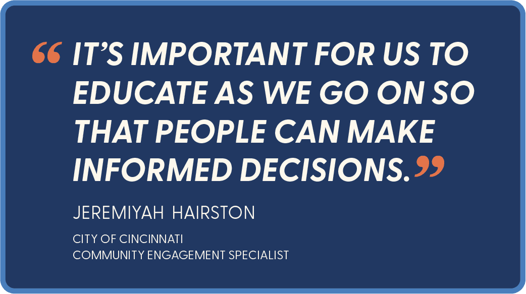 Our team walked away from each stage of our research with a new list of design criteria to consider as we iterated. It was important that we listened to both sides of this process to create a system that would not only connect with our audience, but also be easy to understand and applicable to the wide range of neighborhoods in Cincinnati.